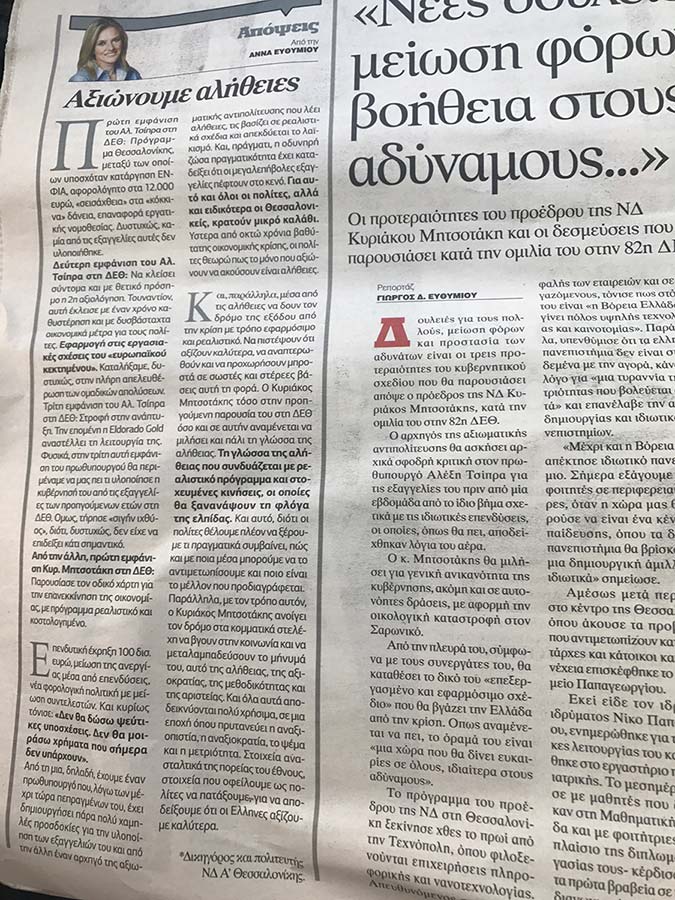Δημοσιεύτηκε στην εφημερίδα "Ελευθερία του Τύπου" στις 16/9/2017