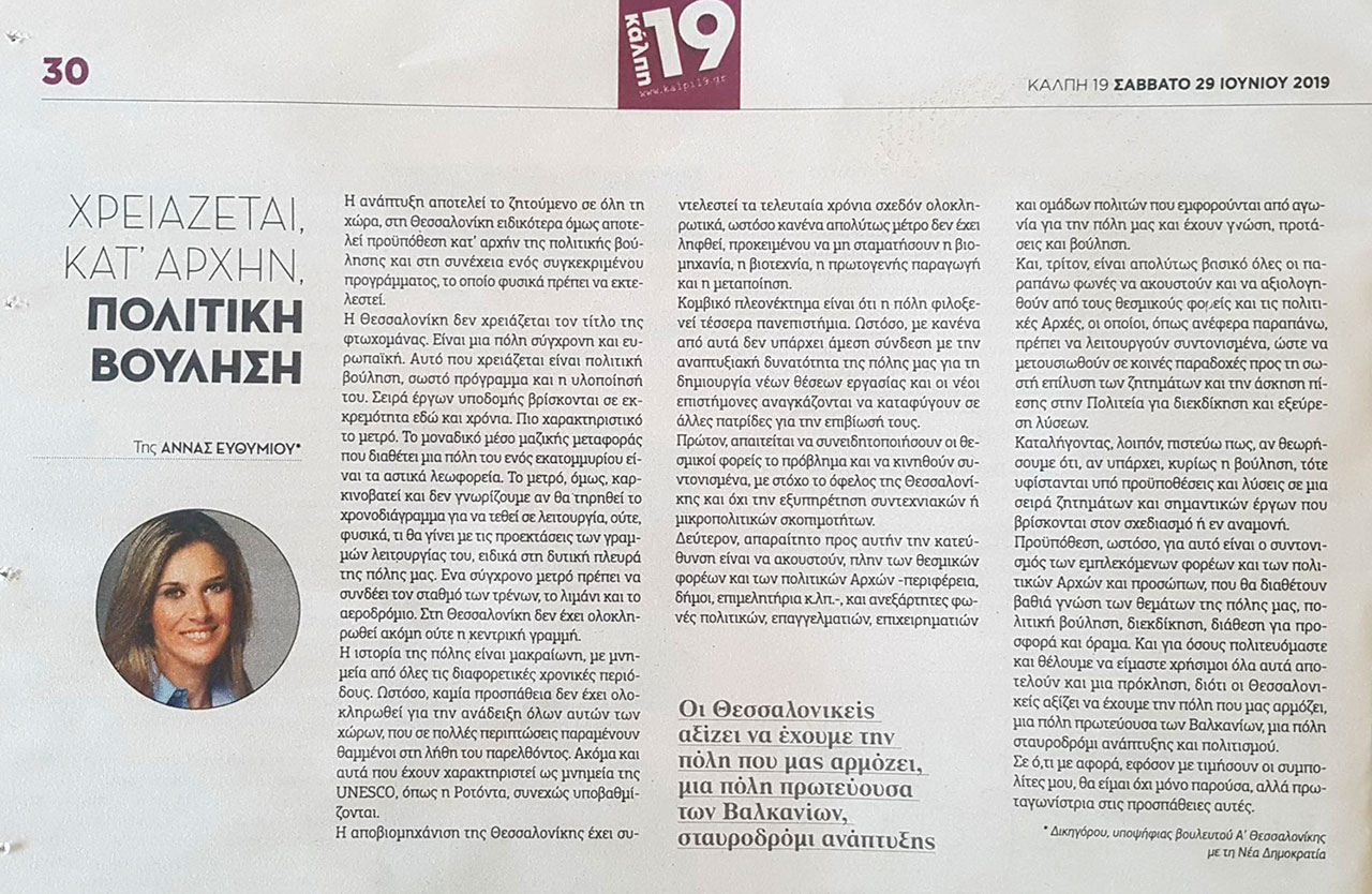 Δημοσιεύτηκε στην εφημερίδα "kalpi19.gr" 29/6/2019