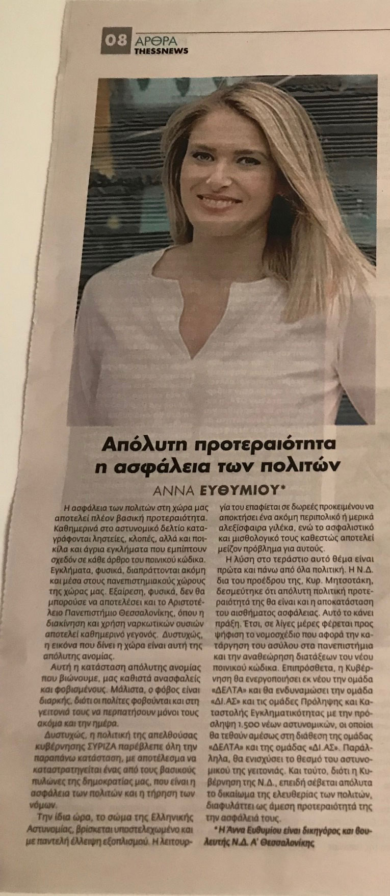Δημοσιεύτηκα στην εφημερίδα "Thessnews" 27/7/2019