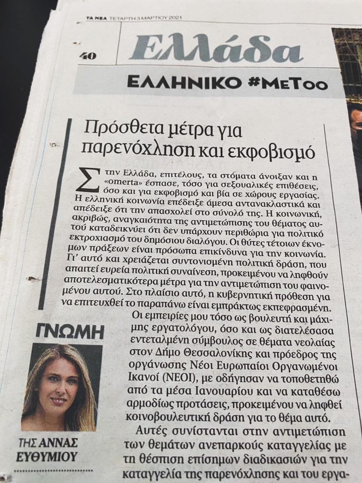 Στην Ελλάδα, επιτέλους, τα στόματα άνοιξαν και η «omerta» έσπασε, τόσο για σεξουαλικές επιθέσεις, όσο και για εκφοβισμό και βία σε χώρους εργασίας.