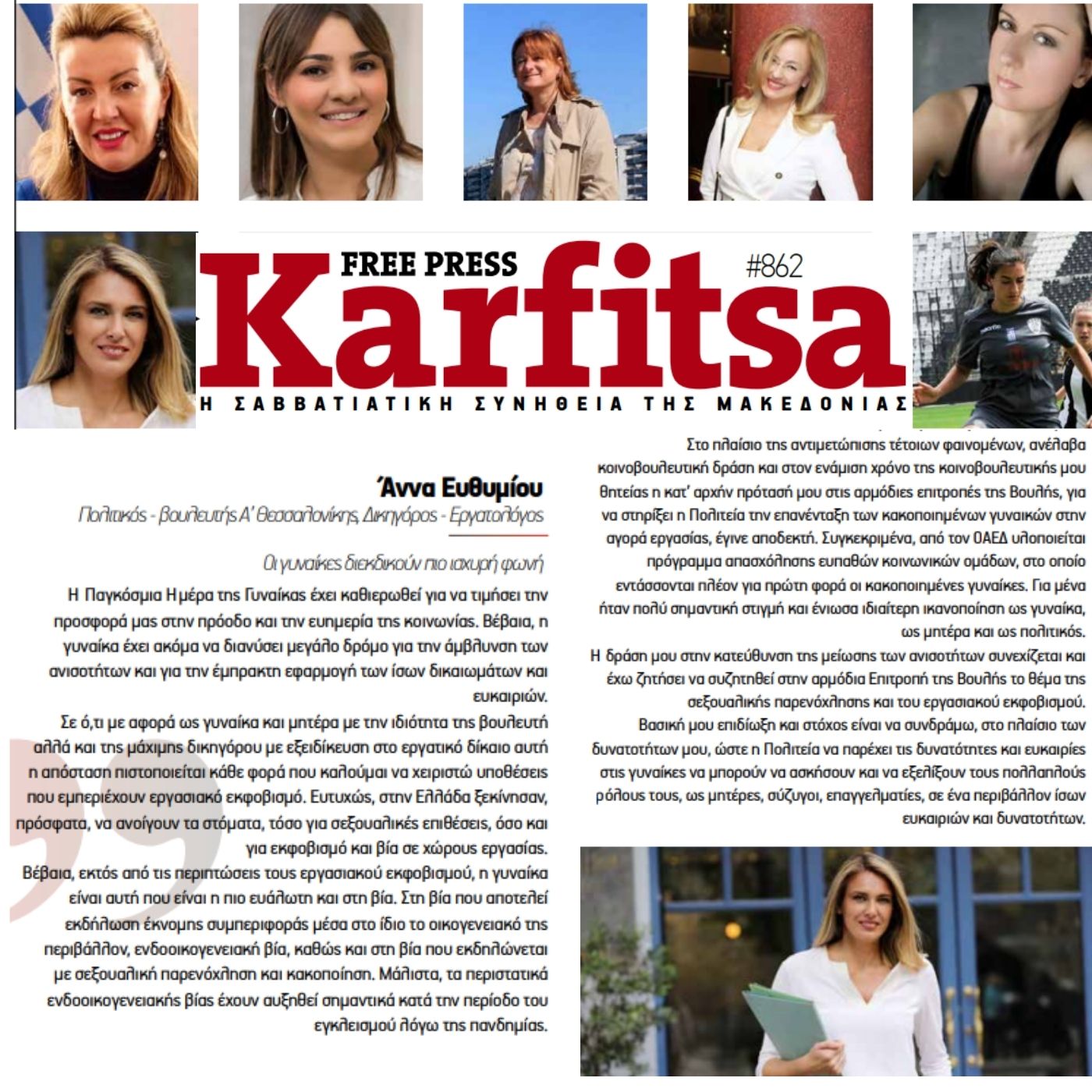 Δημοσιεύθηκε στην εφημερίδα "Karfitsa", στις 6/3/2021